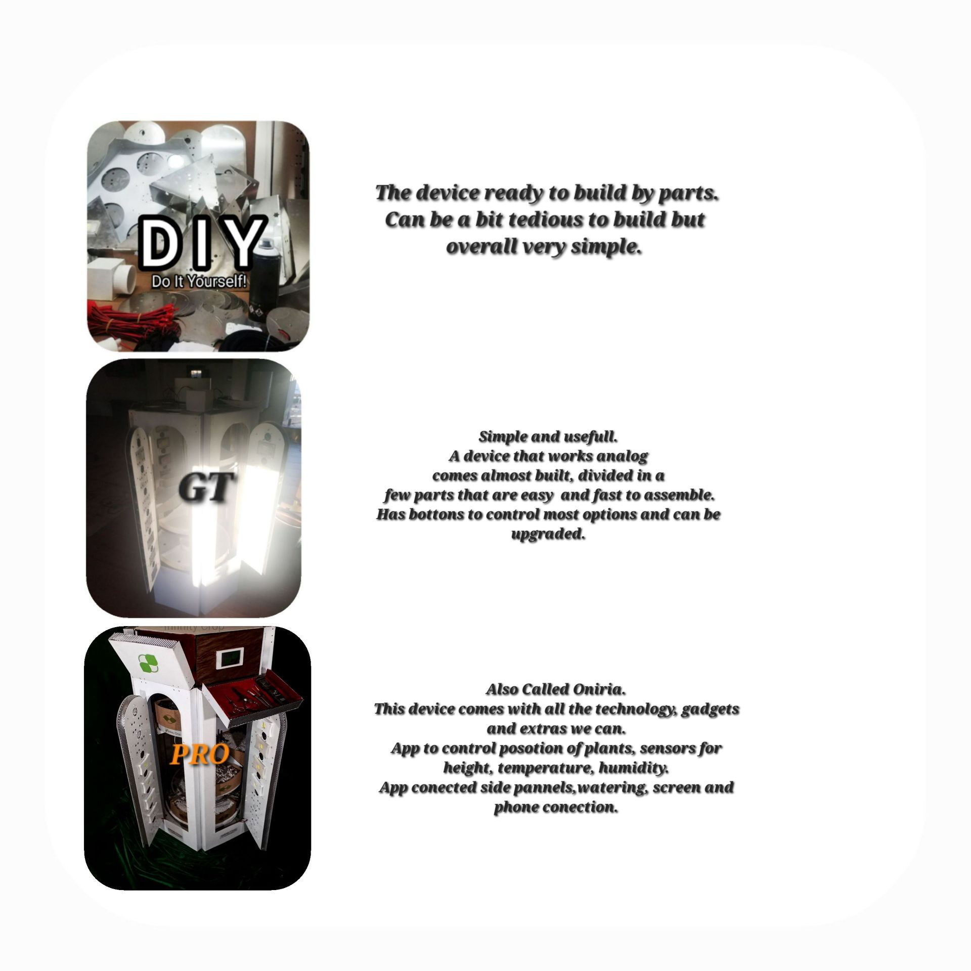 Nous pouvons contrôler l'intensité de la lumière, l'irrigation, la ventilation et la température ainsi que les nutriments, observer et reproduire automatiquement des paramètres ou des climats, effectuer des ajustements et de nouvelles possibilités infinies, il dispose d'une connexion à une application, avec des communautés pour différents types de plantes et cultures..