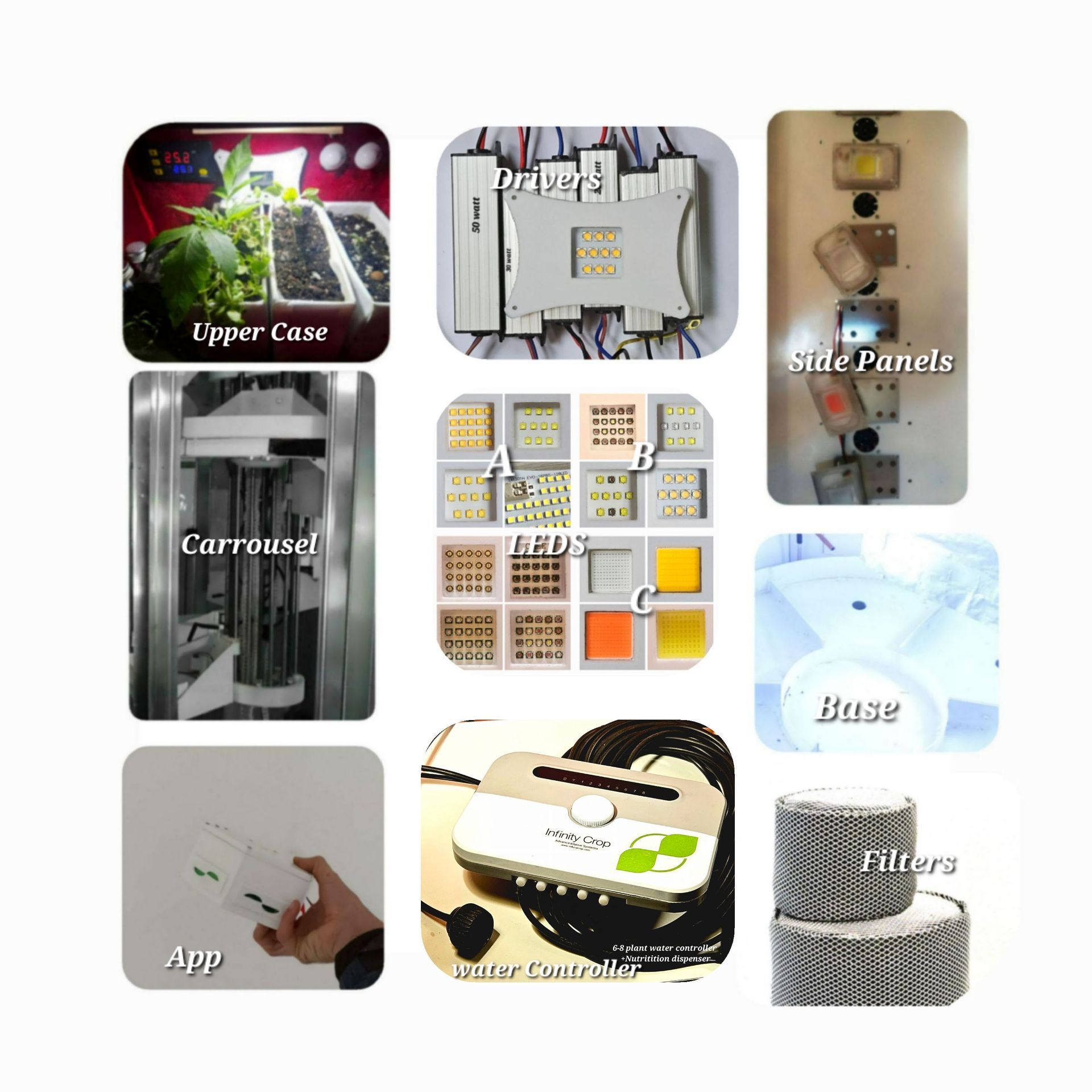 20 étapes réparties en 2 étages faisant un temps total de culture de 1/10 à partir de la graine ou de la bouture dans chacun des étages. La capacité par plateau est 4 fois supérieure à celle des Ic8, ce qui vous permet de cultiver plus de plantes ou des plantes plus grandes. Les LED ont une puissance réglable et il existe plusieurs versions avec des prix différents. Il se compose d'un carrousel où chaque plafond/phase dispose de 4 LED dimmables de 10-50 watts 10 panneaux latéraux. Cet appareil est le favori des fermes intérieures.