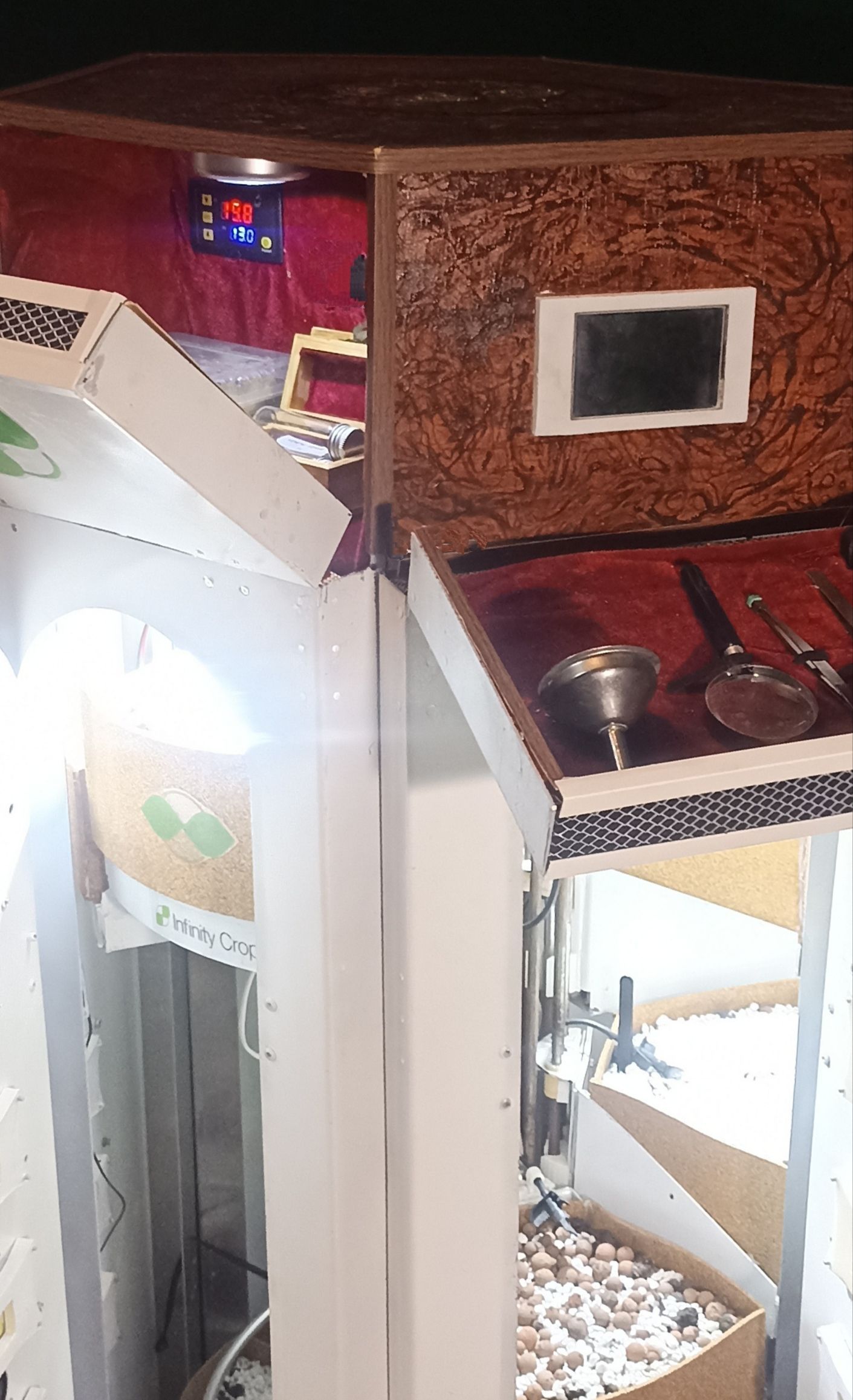 Au sommet, vous pouvez avoir une plante mère, des boutures, une zone de séchage, des ustensiles et plus encore !